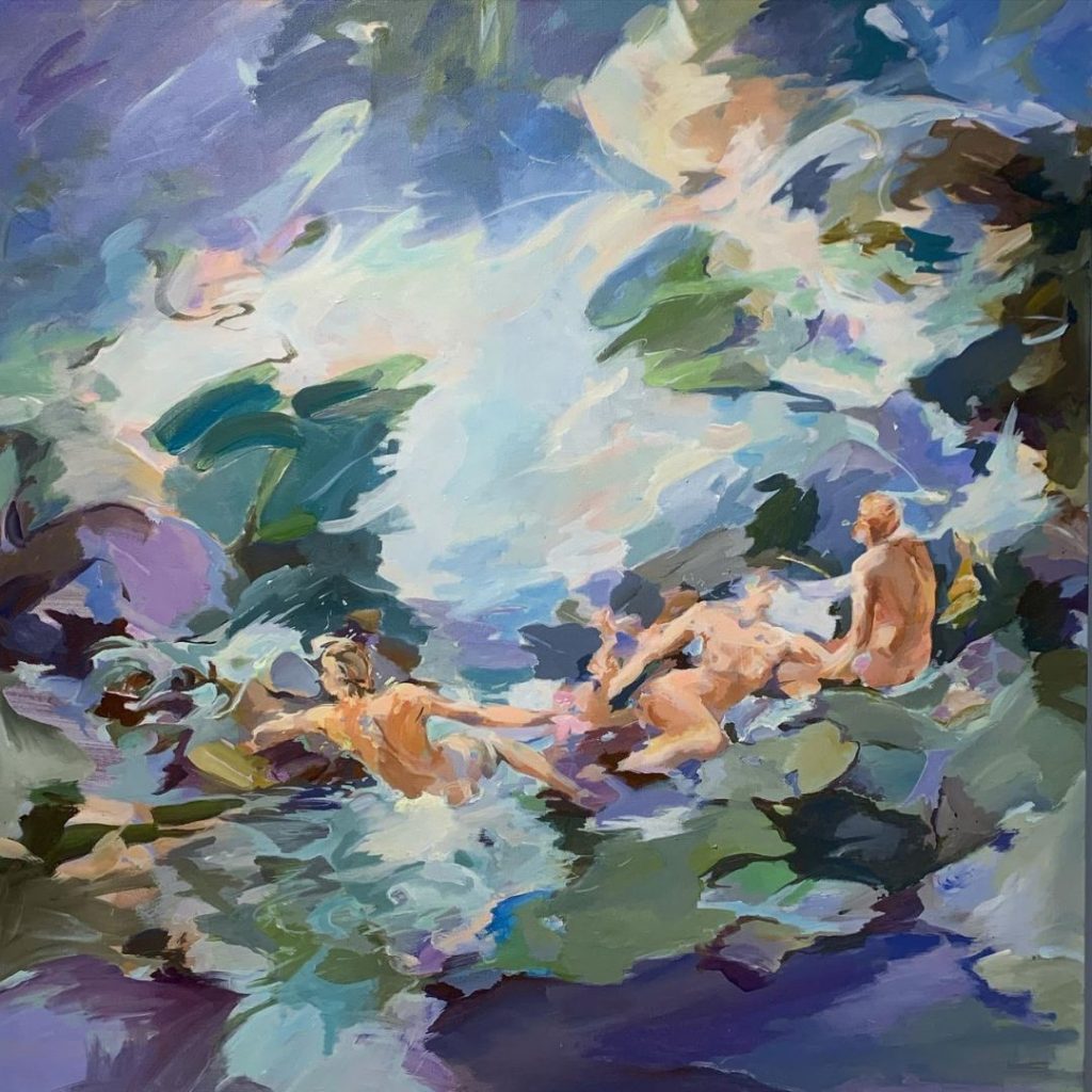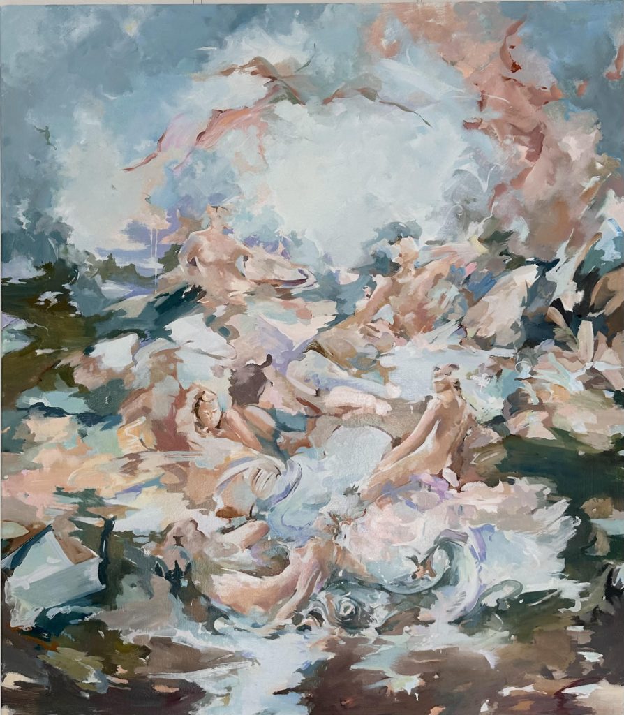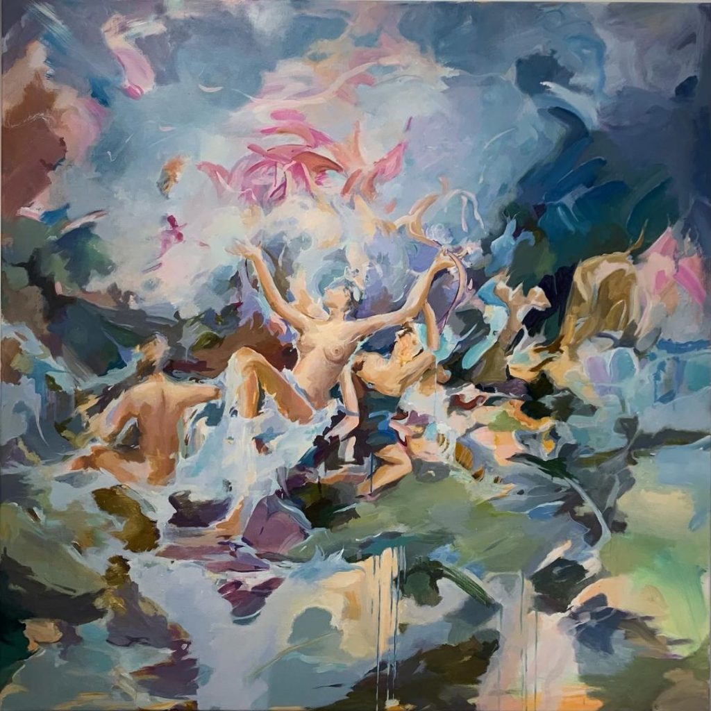 „SETTING OF THE SUN 2022″Based on a template of Francois Boucher (1752) Acryl on canvas120 x 120 cmSOLD